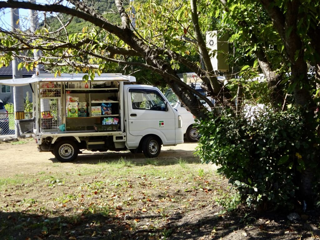 あ、さっきの移動スーパー、笠島地区に回って来た。