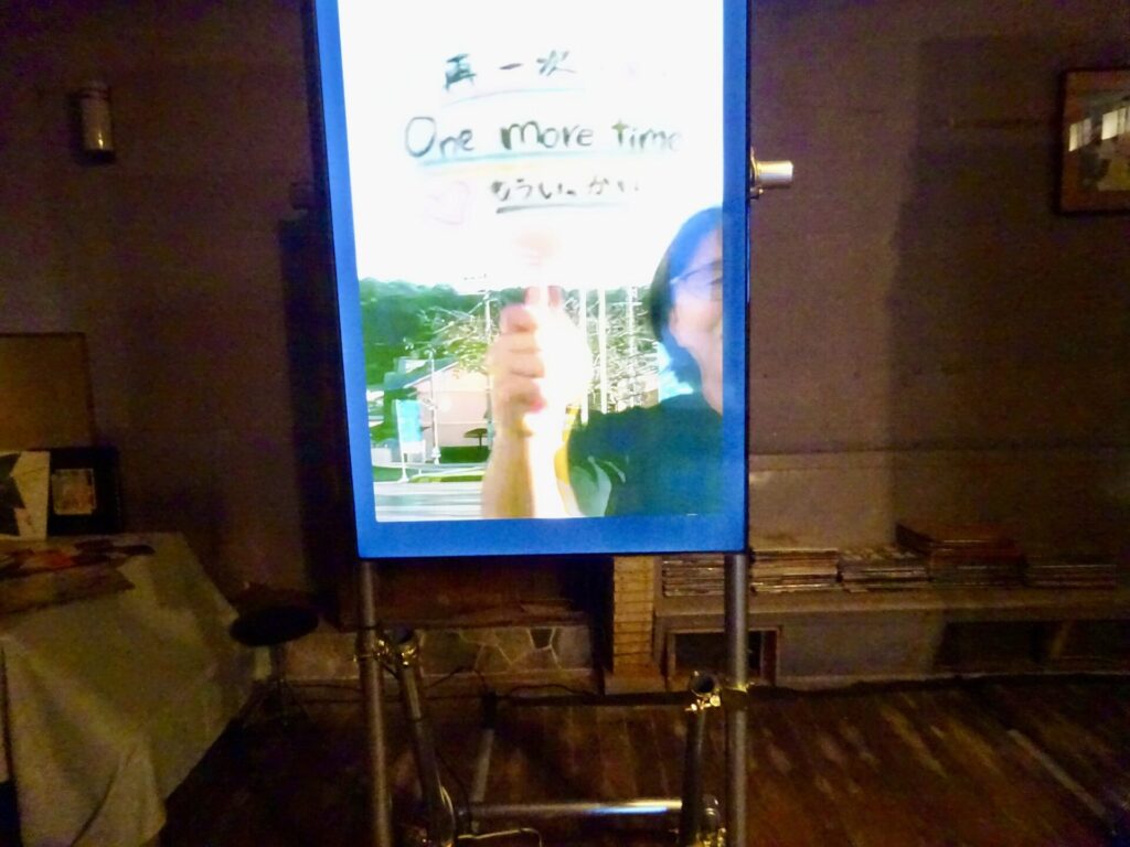 向こう側にいる瀬戸芸スタッフさんが「もういっかい」と書かれたうちわを振ってくれてる〜!