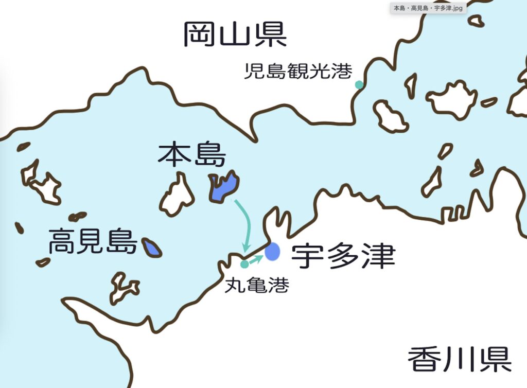 岡山側から高見島・本島・宇多津エリアを巡る旅では、4回船に乗りました。
