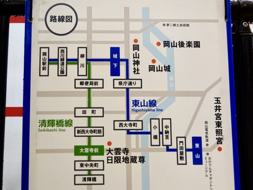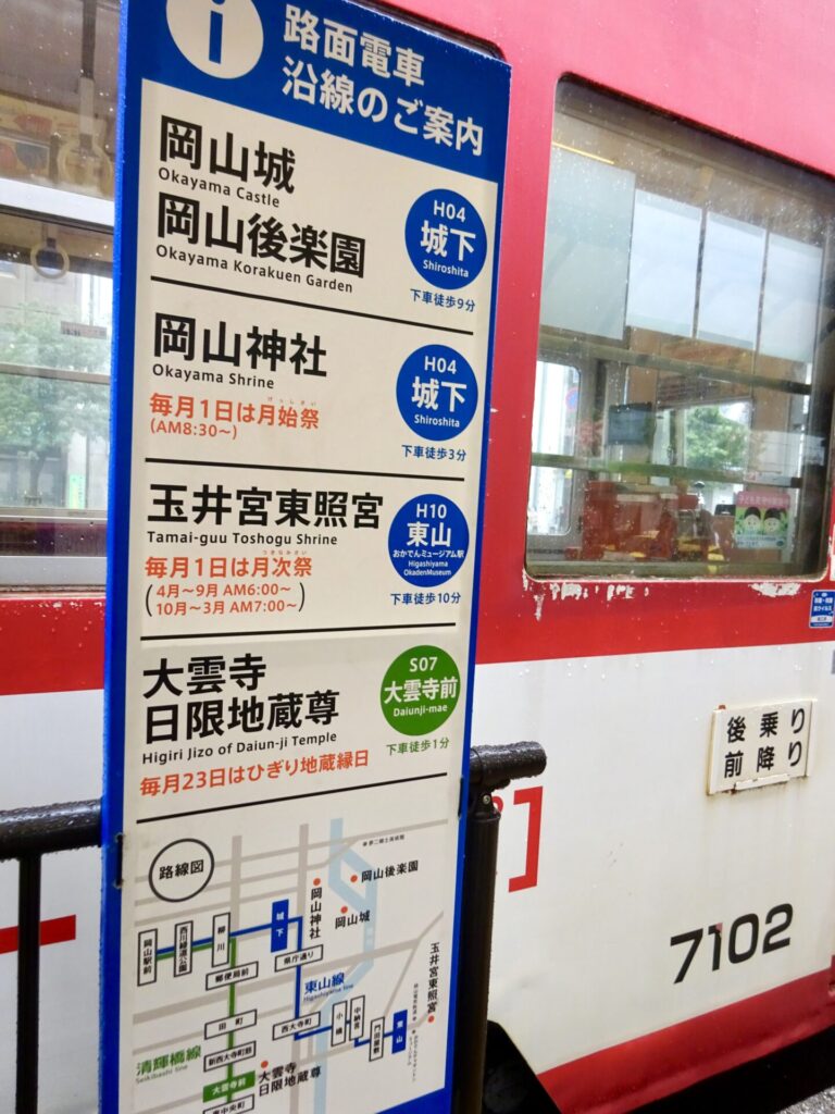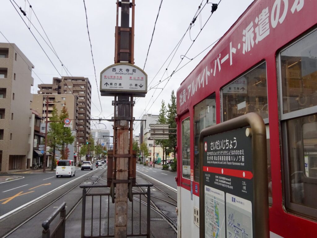 今回は、JR岡山駅前の電停から、路面電車に乗ってスタート。