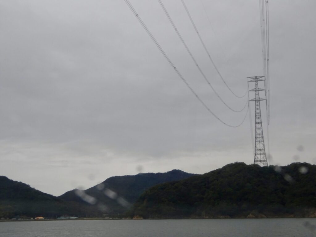 本州と四国を繋ぐ、送電線の下をくぐります。