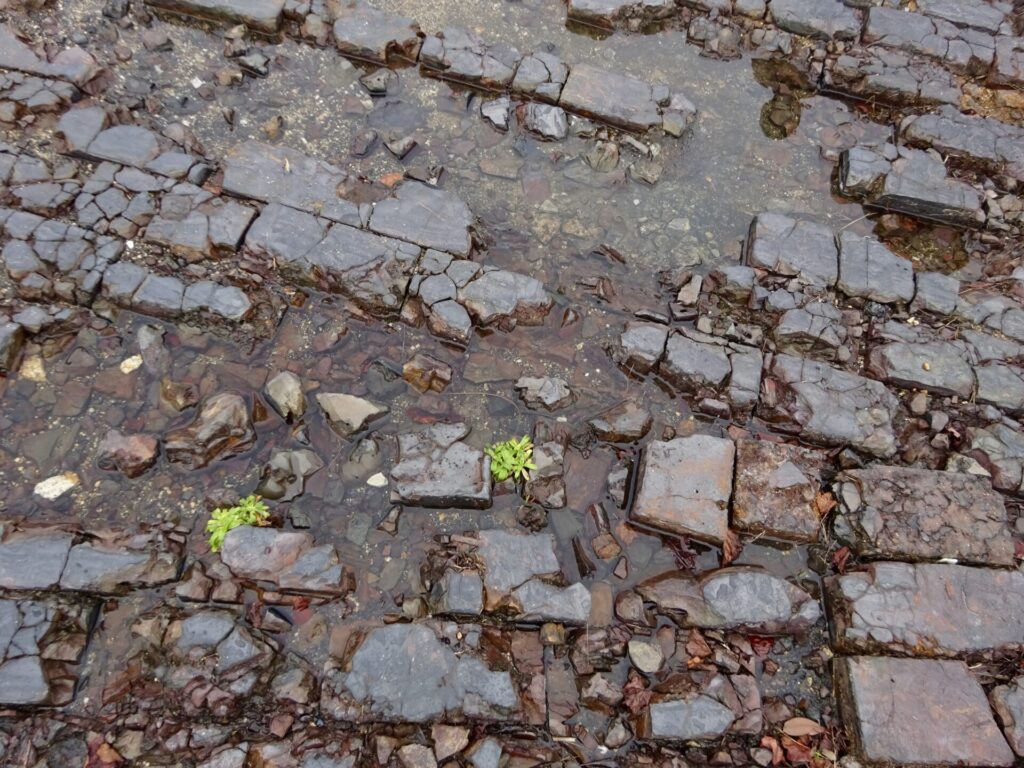 独特な遺構を眺めながら、敷地内を進みます。