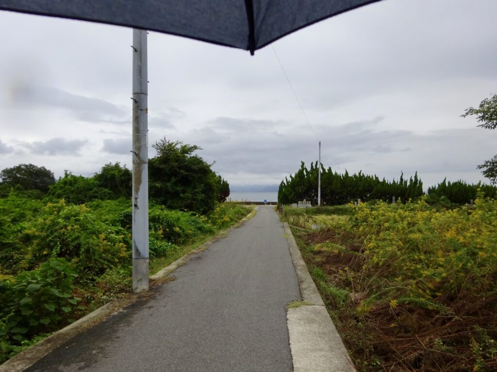海辺に続く道を歩いていると、雨がほぼ、やんできました。