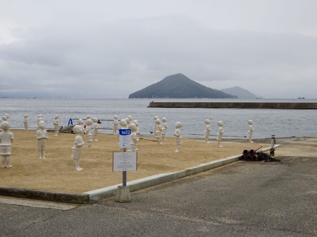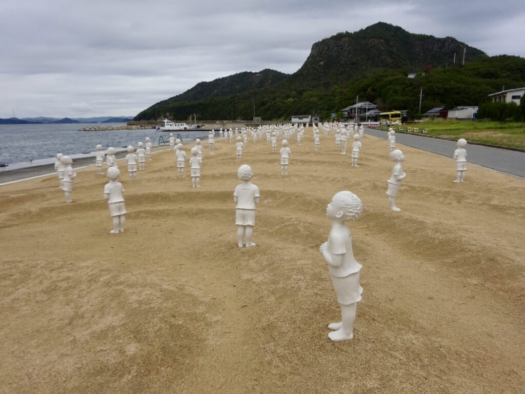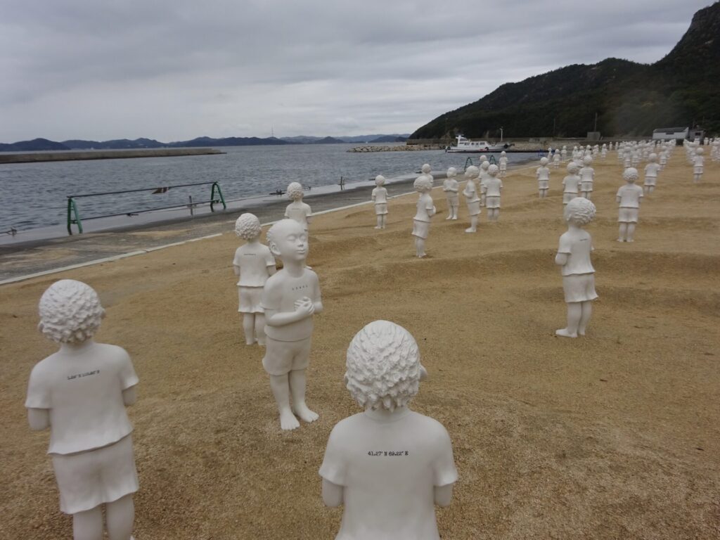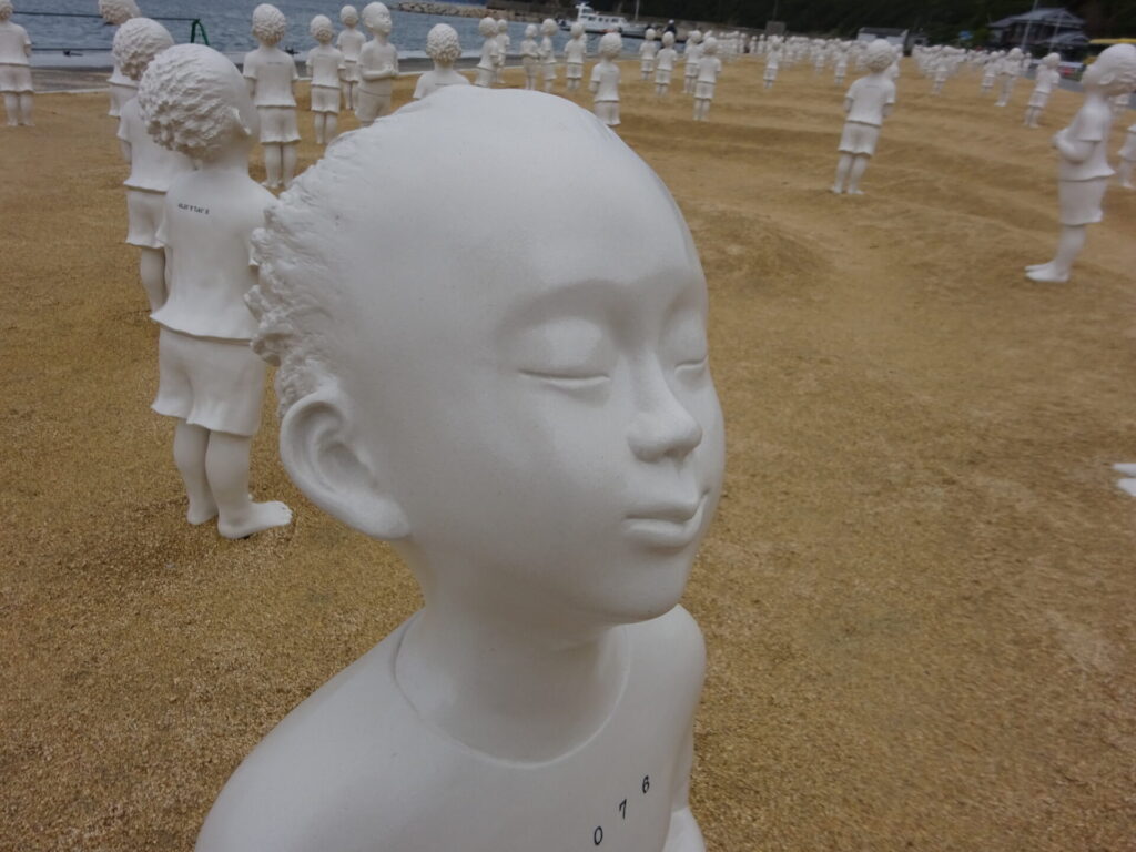 ここ豊島の甲生の海岸に、世界の国々の子どもたち197体が立っています。